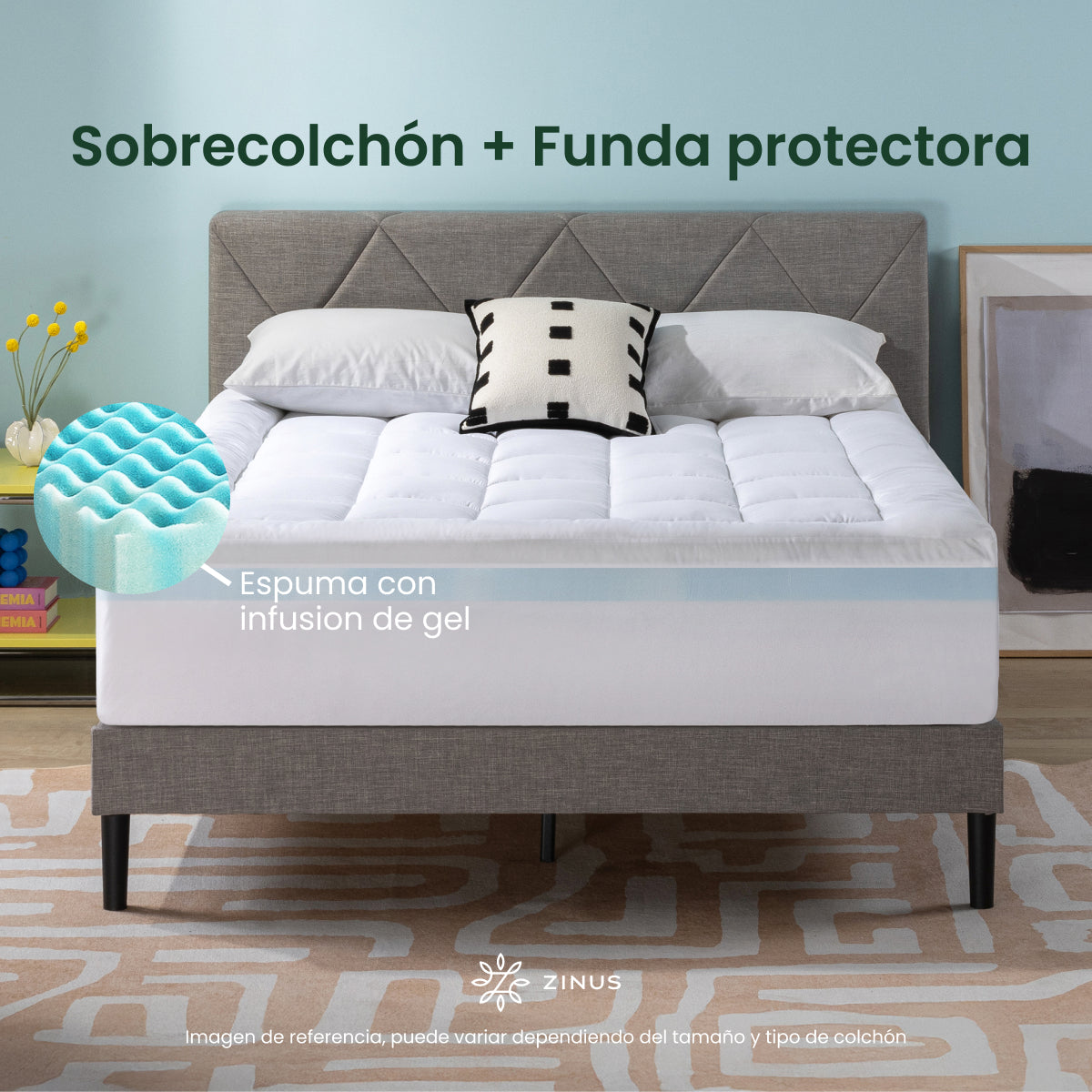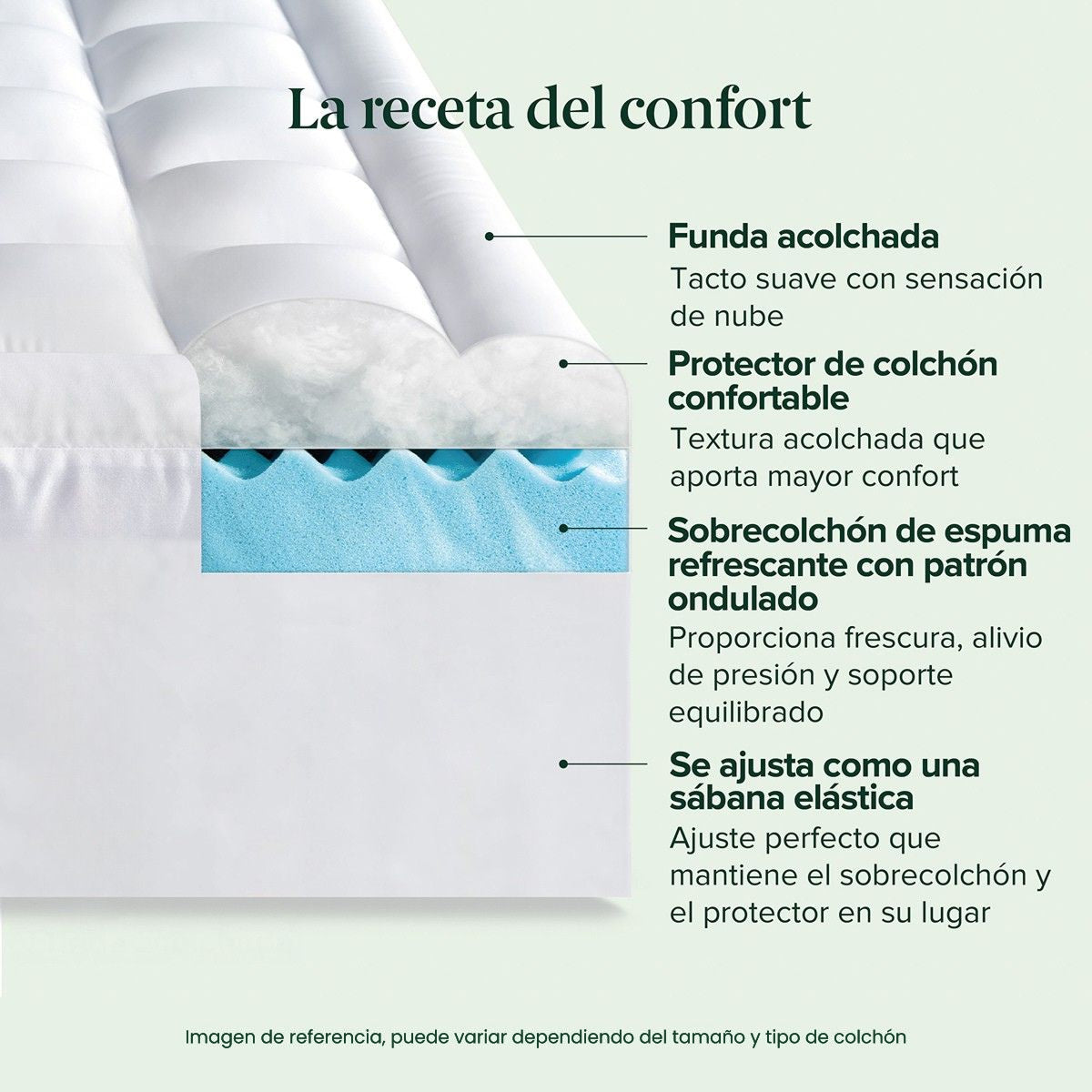 - ELEVA TU COLCHÓN: Sobrecolchón con elástico y acolchado de memory foam con base. Ideal para poner como si fuera una sábana de cajón